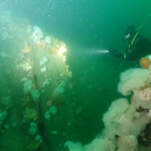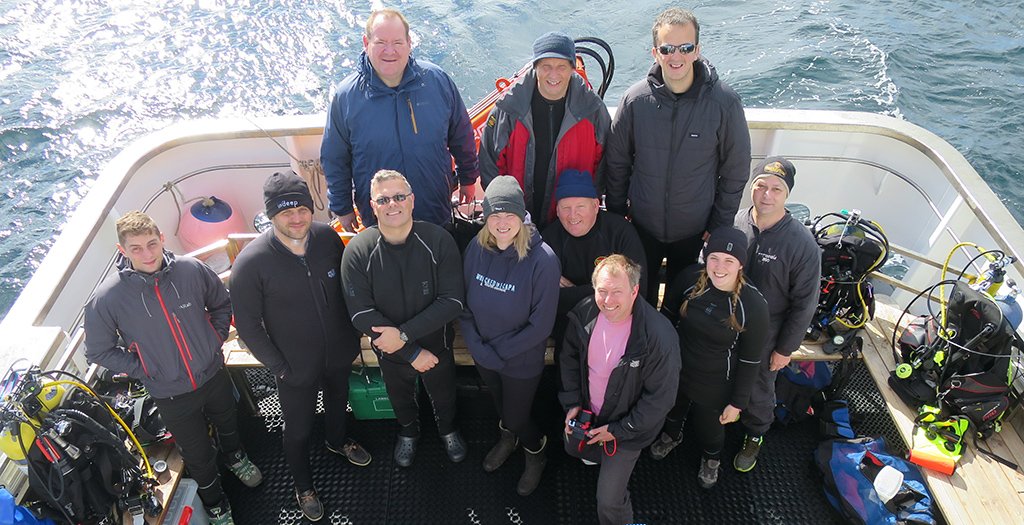 Thanks to a very useful crane and assistance from others, the dive kit was swiftly loaded onto to our chariot for the next week, the MV Huskyan ». After all the hard work was done, it was onwards to our very conveniently located divers lodge where we could get some supplies in and unpack. After a meal at the local pub it was time to turn in ready for the first days diving.
