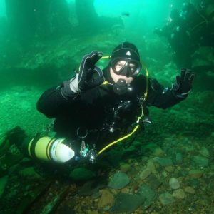 Diving over the week was great, generally in the 30-40m range with some deeper dives. Visibility was changeable throughout the week, but generally around the 5-10m range with more on some of the dives. From massive size dreadnoughts, to smaller cruisers, mine layers and block ships, there was plenty of history and interesting features to see. A visit to the local Scapa Flow museum and nearby Lyness Naval Cemetery was also very interesting (and featured on recent coverage about the 100 years anniversary of the battle of Jutland).