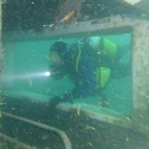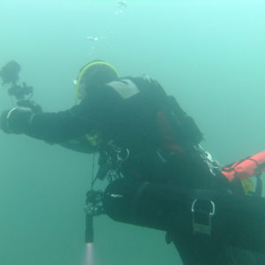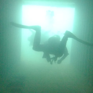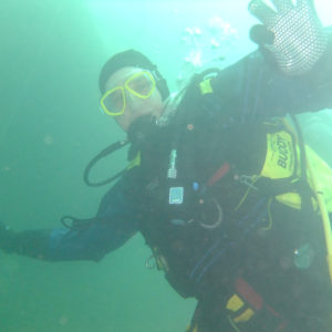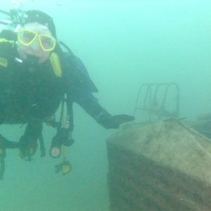 He took us to the single deck bus, the top of the double deck bus and then onto the gnome garden and the ISO container swim through. Passing a few perch on the way ,but not many fish around due to temperature. Kevin Herbert showed off his ever improving buoyancy skills by swimming through the single deck bus and the ISO container. Well done Kevin.