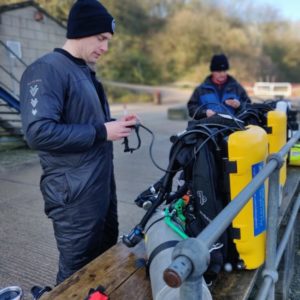 We did the BSAC course, run by an instructor from the BSAC Technical Group, using Vobster Quay for the open water dives. Theory was done in advance over Skype to free up time at the site and evenings.